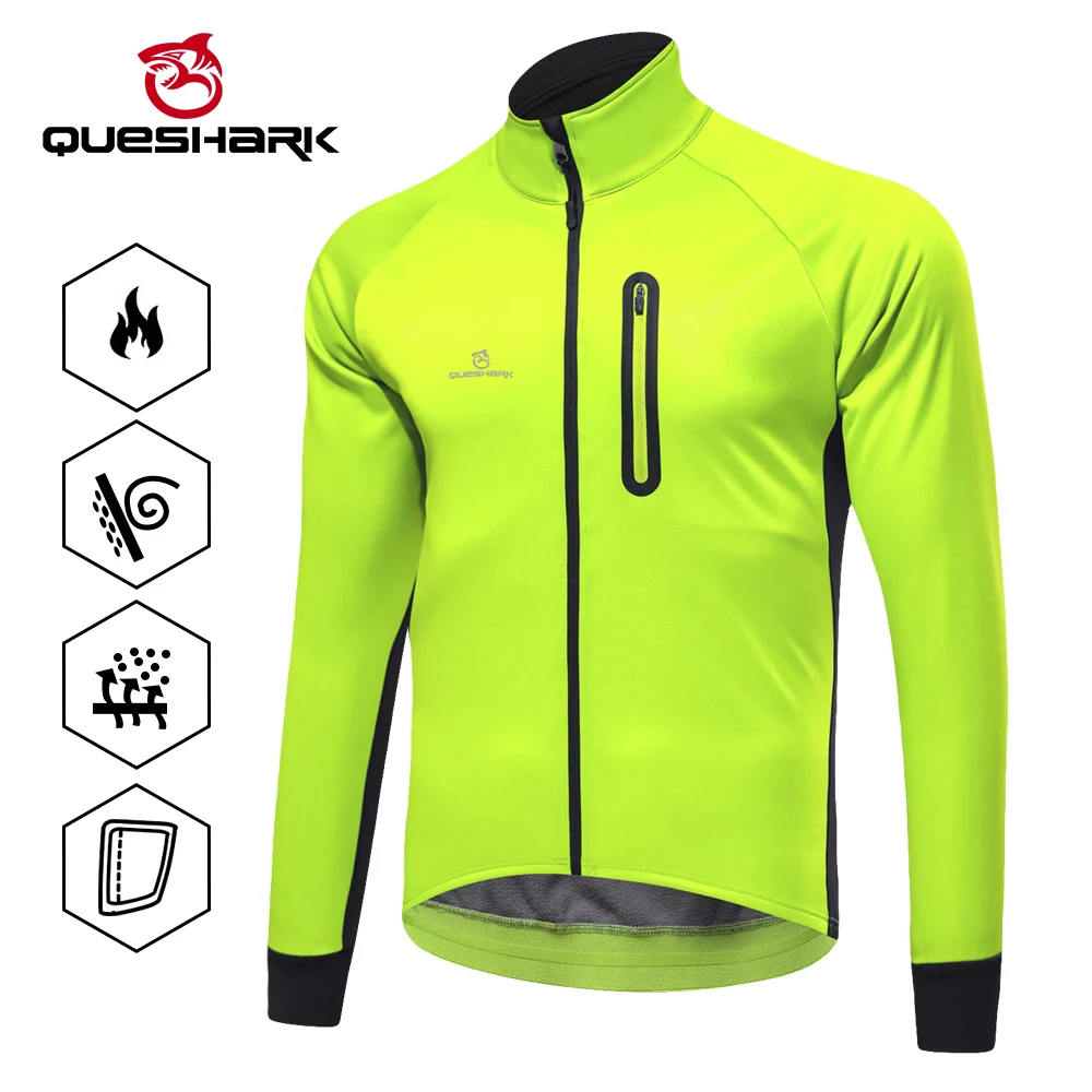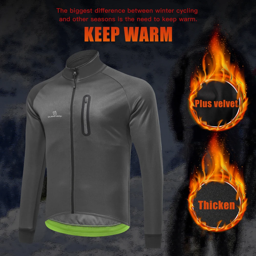HOT Sale QUESHARK Winter Autumn Warm Long Sleeve Cycling Jacket Windproof Men Thermal Bicycle Coat Fleece Br