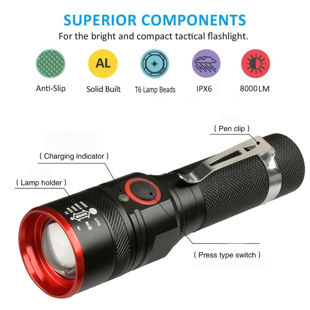 10000 Lumens Bike Light Ultra-Bright Zoom T6 Bicycle Front LED Flashlight Lamp USB Rechargeable Cyc